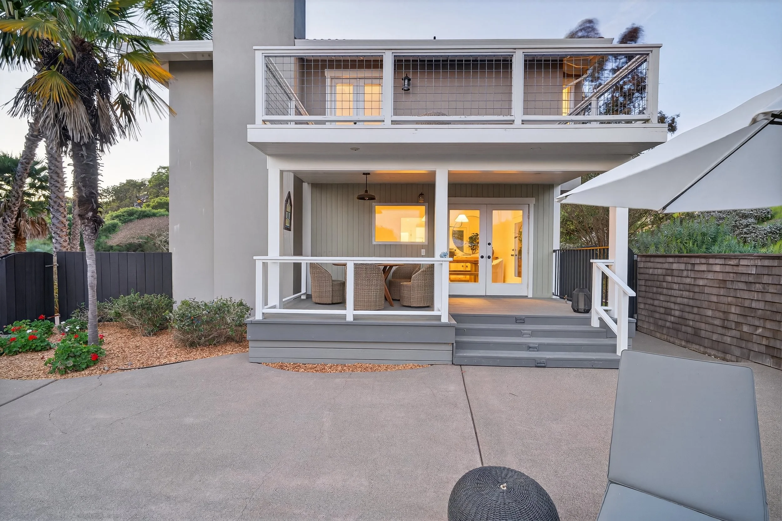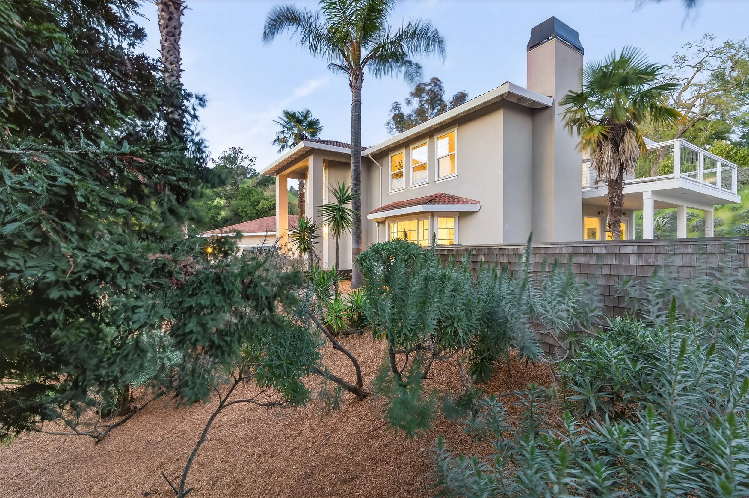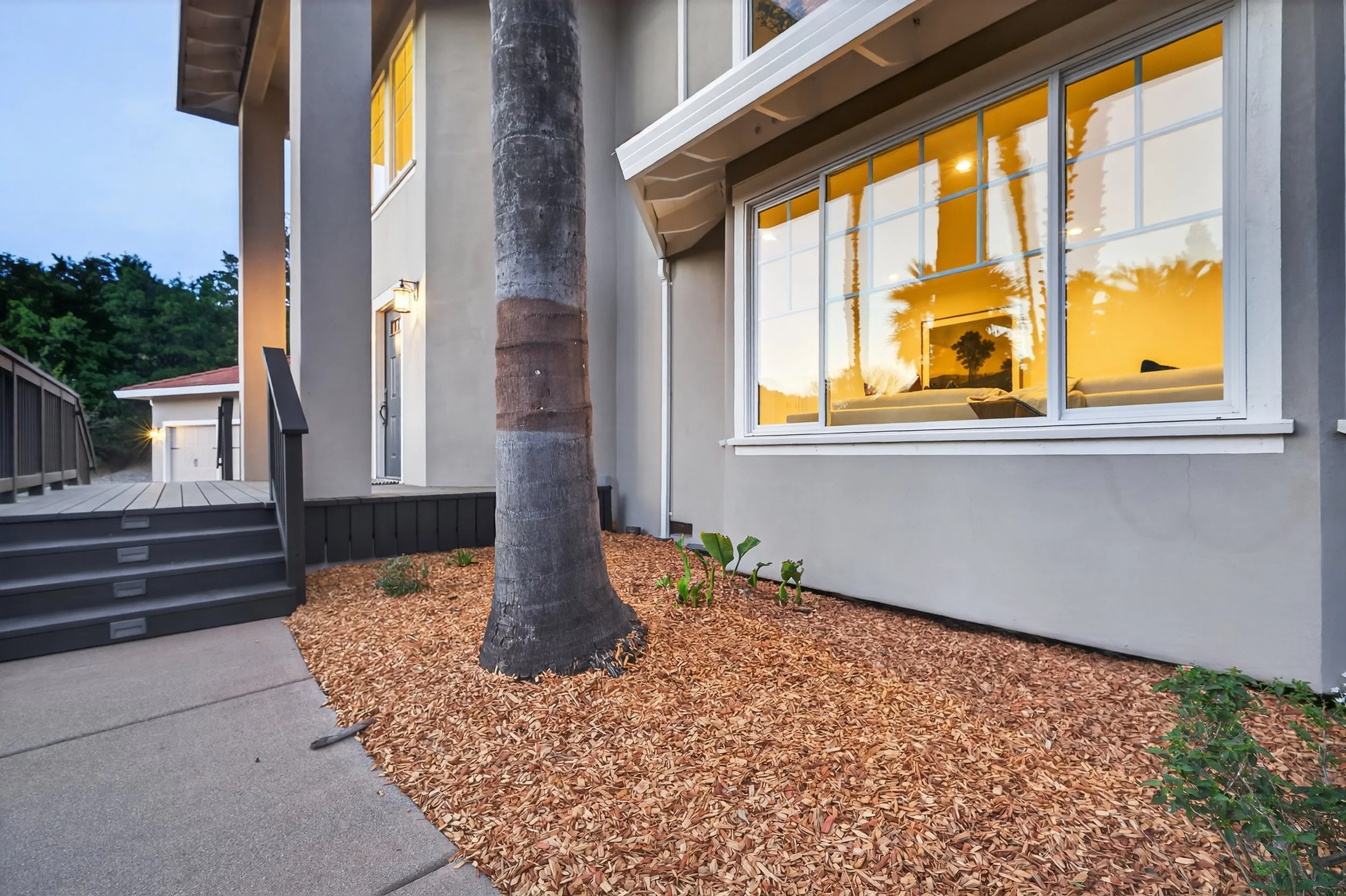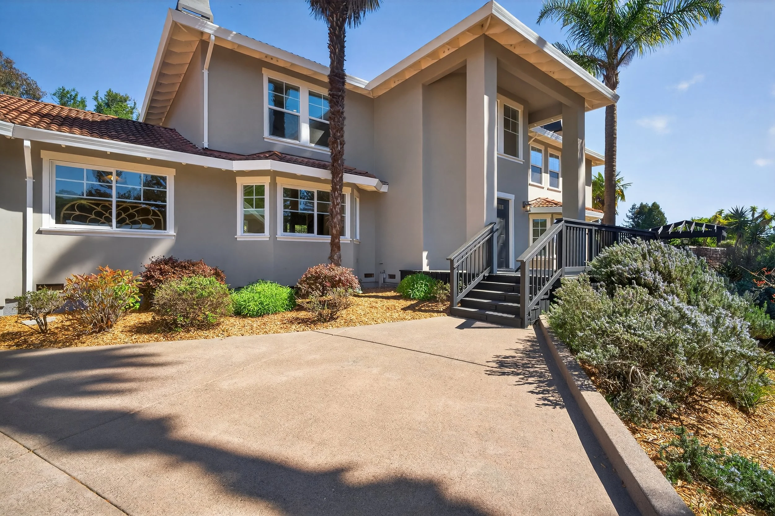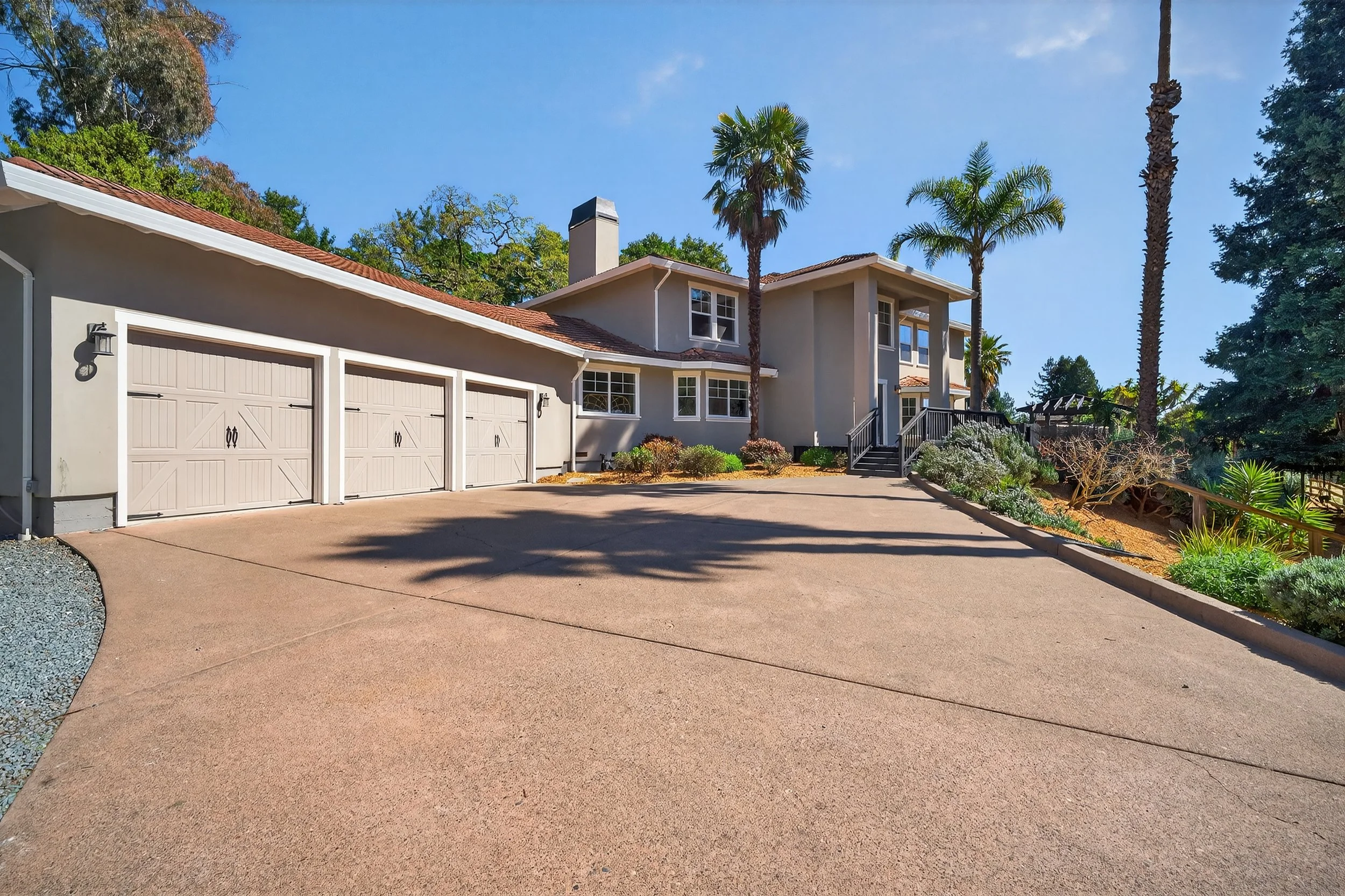 Expansive front yard with tall palm trees (potential outdoor event venue)