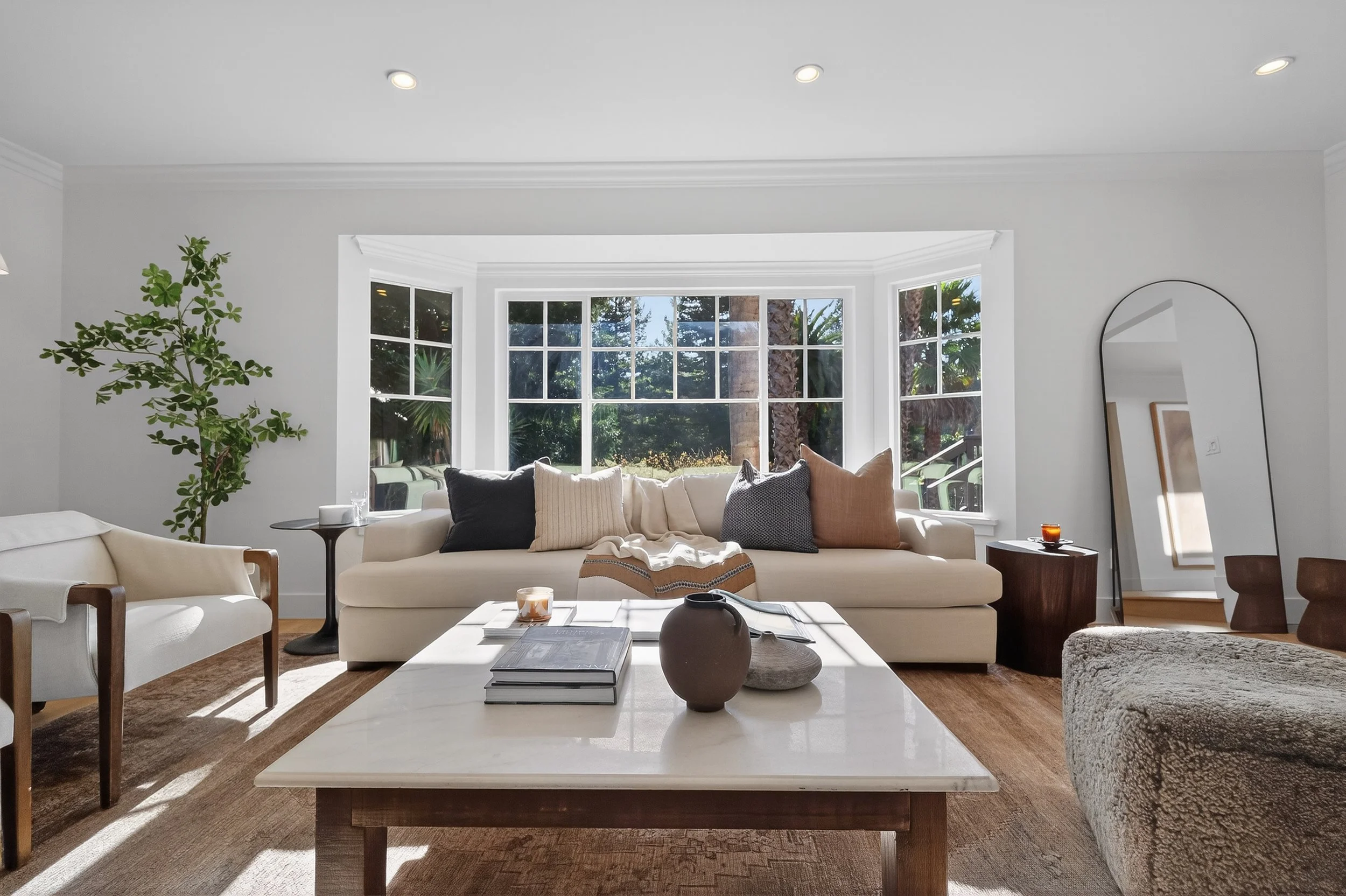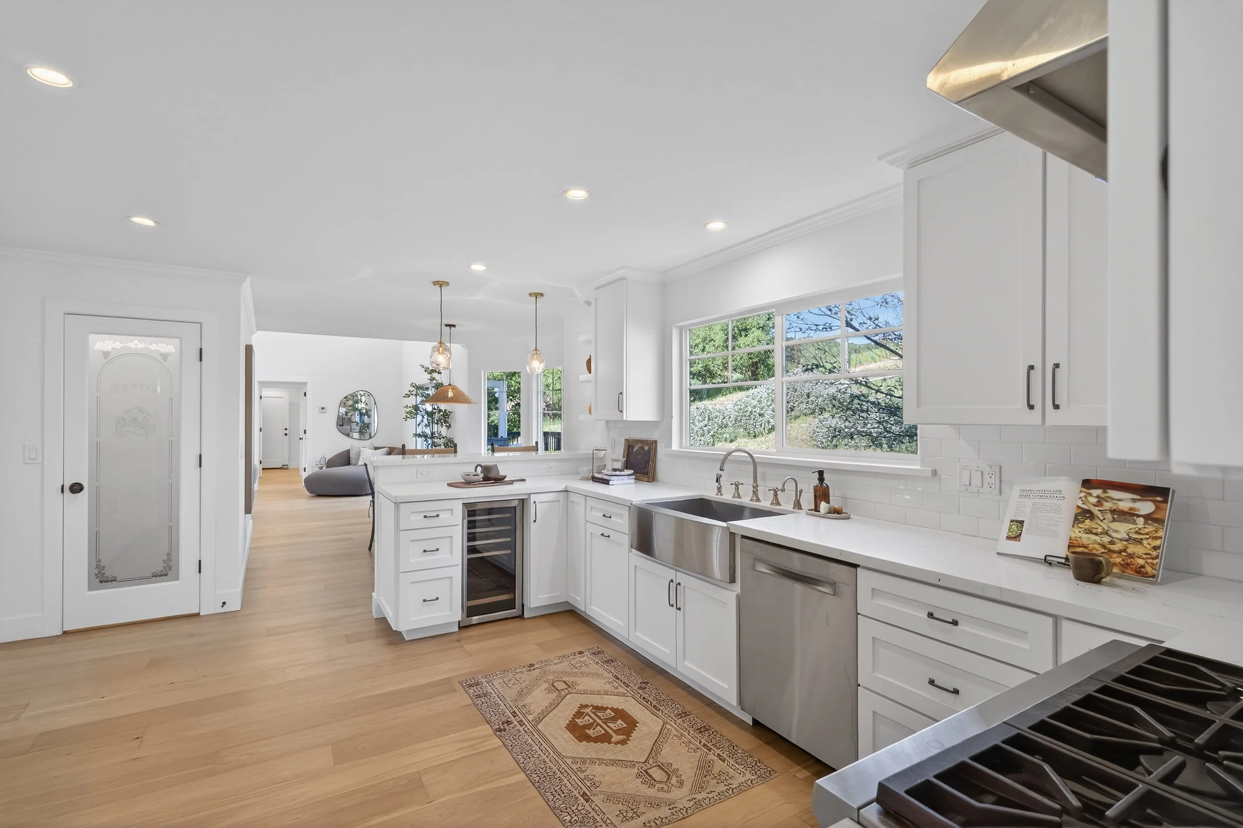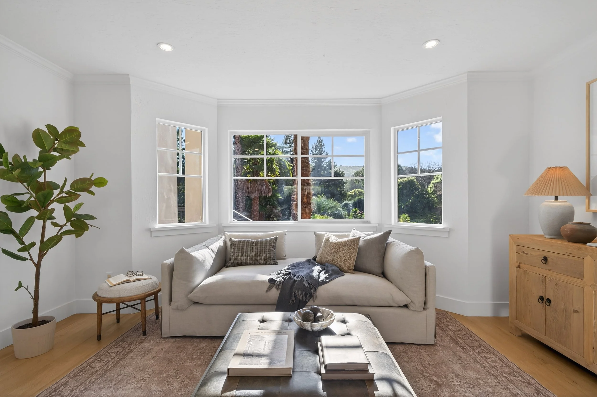 Set on a spacious, sunny lot in Novato, 20 Archibald offers one-of-a-kind privacy, scale, and a layout designed for both daily living and hosting. Tall palm trees and an expansive front yard create a welcoming first impression, while a long driveway and three car garage provide ample parking for guests. Inside, new wide plank floors run throughout the home, grounding each room in a clean, timeless aesthetic.