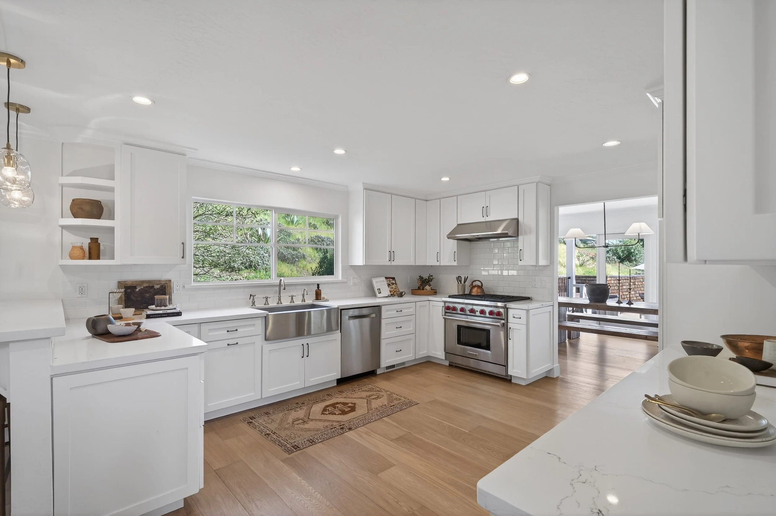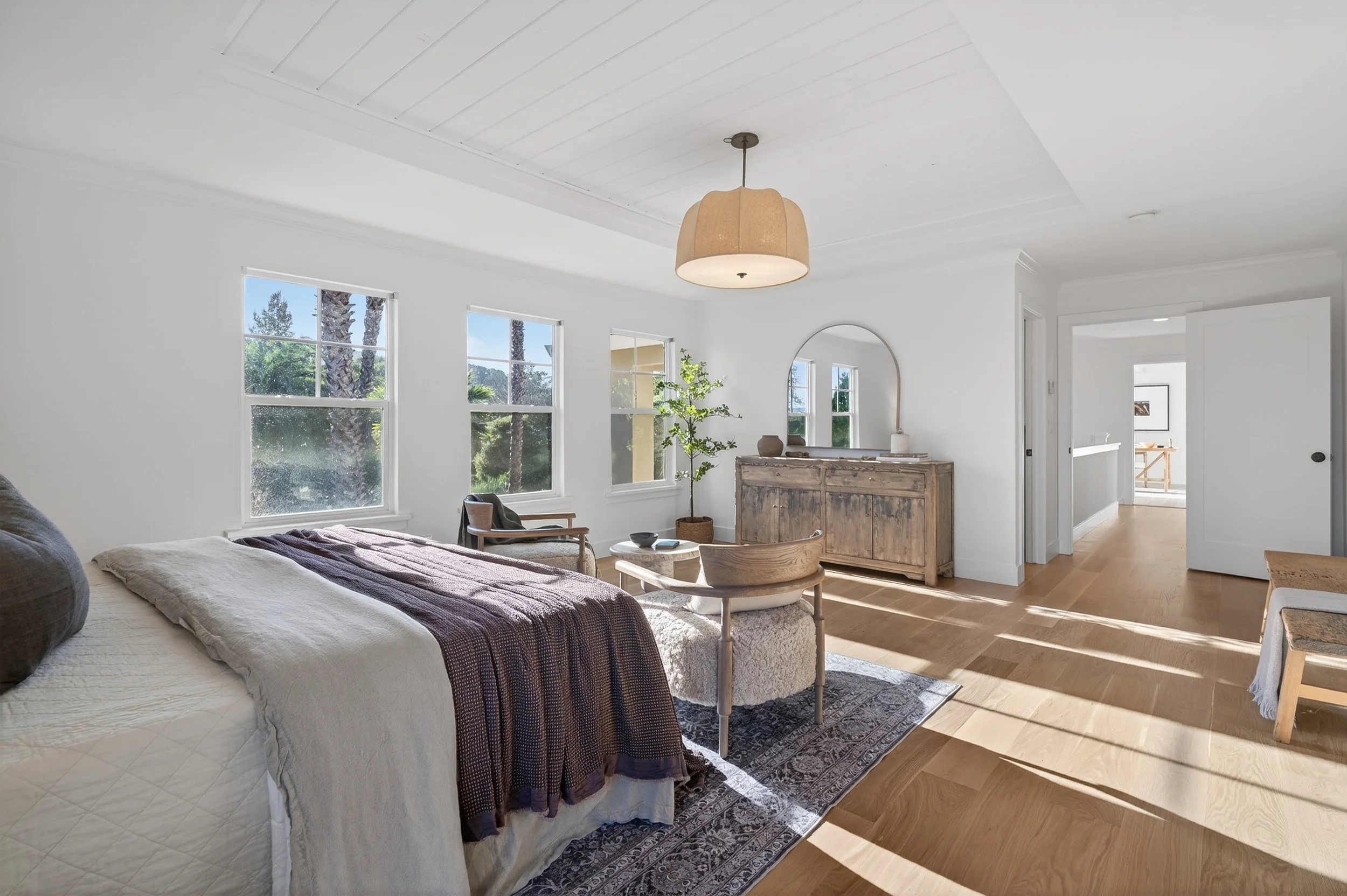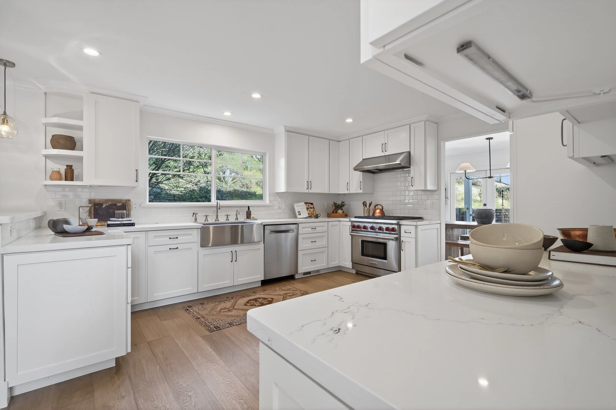 Set on a spacious, sunny lot in Novato, 20 Archibald offers one-of-a-kind privacy, scale, and a layout designed for both daily living and hosting. Tall palm trees and an expansive front yard create a welcoming first impression, while a long driveway and three car garage provide ample parking for guests. Inside, new wide plank floors run throughout the home, grounding each room in a clean, timeless aesthetic.